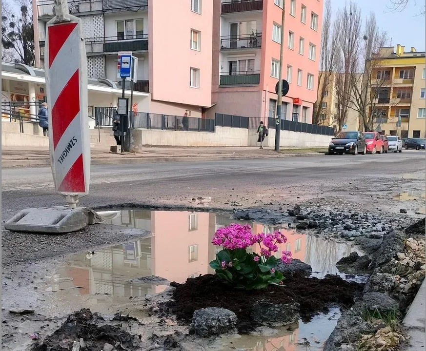 Mieszkańcy Łodzi mają dość dróg, część z nich – w ramach protestu – postanowiła wrócić starego zwyczaju sadzenia w nich kwiatów doniczkowych. Te pojawiły się w weekend na Bałutach na ul. Franciszkańskiej – niedaleko budynku ASP oraz w wyrwie przy ul. Boya – Żeleńskiego.