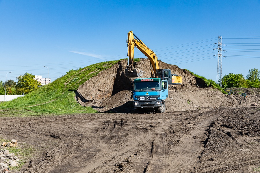 W mijającym tygodniu przyszedł czas na kolejne prace na górce. U jej podnóża pojawiła się koparka. Uzbierana ziemia została natomiast wywieziona przez potężne wywrotki.
