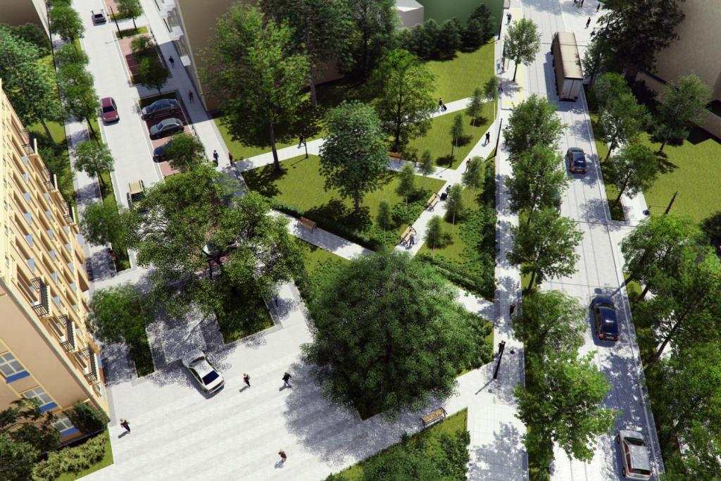 Stały element ulicy – istniejący po obu jej stronach szpaler drzew otrzyma nowy wygląd. Na ulicy przybędzie zielonych akcentów.