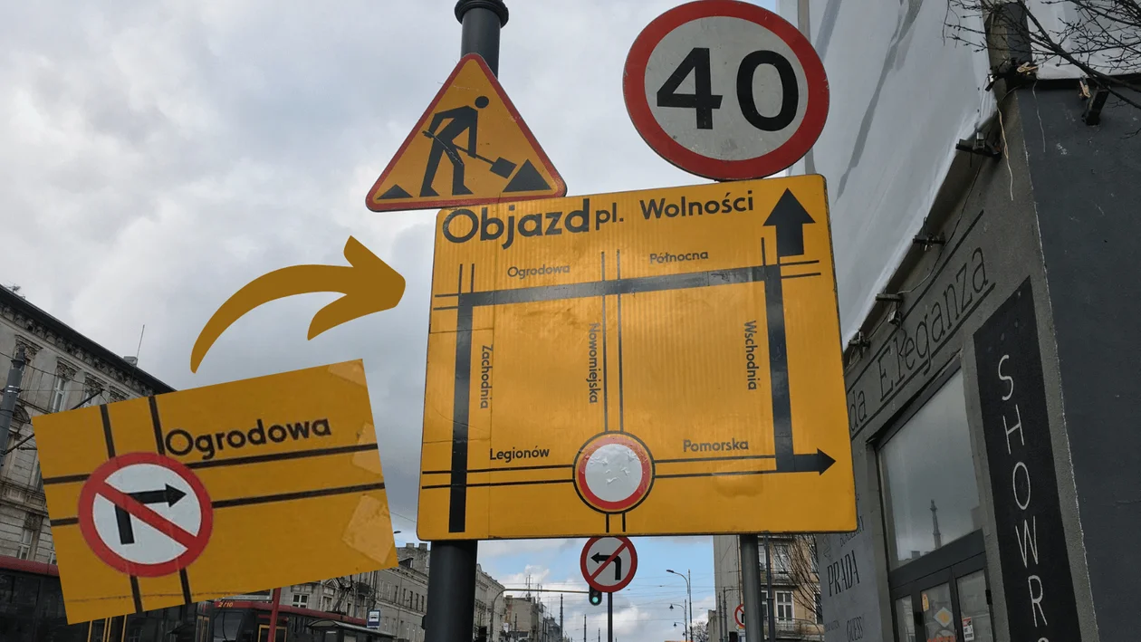 Zamknięcie placu Wolności w Łodzi spowodowało także zamknięcie przejazdu przez ul. Legionów, i wyznaczenie nowych objazdów. Ruch samochodowy został skierowany przez ulicę Ogrodową i Północną. Niestety, ale nawet jeśli pojedziemy tak, jak mówią nam znaki, to daleko nie zajedziemy.