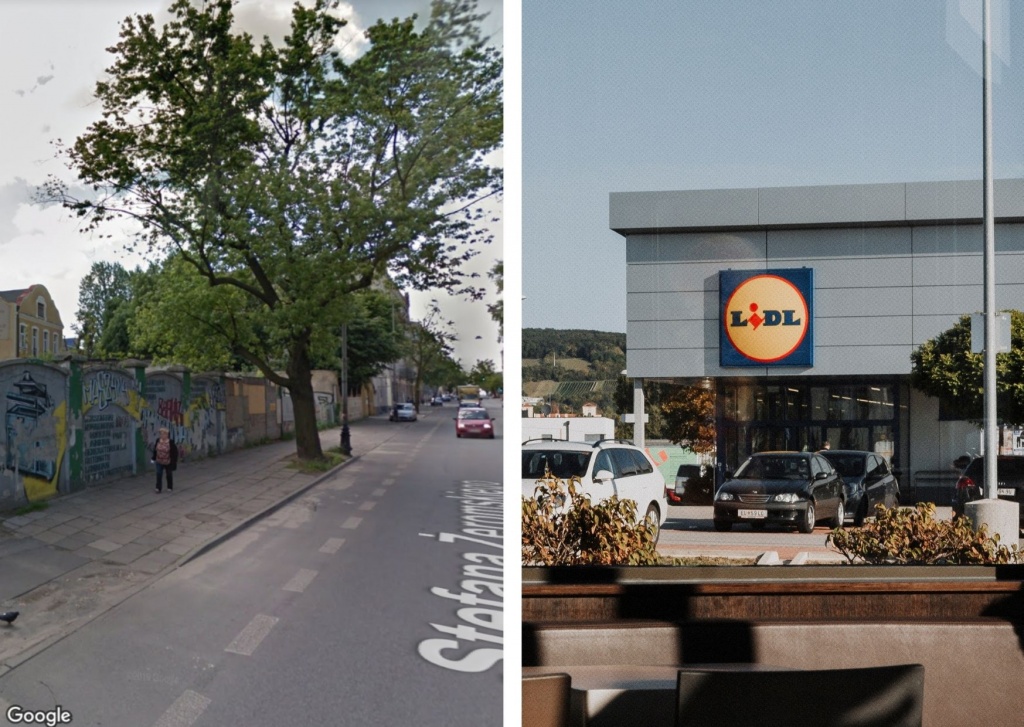 - Zdrowy, prawie stuletni klon srebrzysty, posadzony w 1928 roku przy ulicy Żeromskiego, padł w starciu z Lidl Polska. Oczywiście kolidował z wjazdem, którego oczywiście nie można było zaprojektować na dość szerokiej działce (podwójnej szerokości jak na łódzkie standardy) nigdzie indziej niż w miejscu przyulicznego drzewa - których tak dotkliwie brakuje, szczególnie na Starym Polesiu - pisał Nykiel.