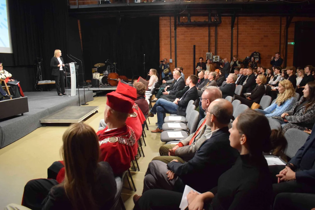 Zebranych przywitała dr hab. Milenia Fiedler, rektor filmówki. Wśród zaproszonych gości, którzy przyszli do hali filmowej, w której odbywała się uroczystość, byli m.in. posłowie Ewa Szymanowska i Włodzimierz Tomaszewski, Marcin Iskra z Ministerstwa Nauki i Szkolnictwa Wyższego oraz wiceprezydent Łodzi Małgorzata Moskwa-Wodnicka.Zaproszeni, którzy po kolei zabierali głos, mówili o łódzkiej Szkole Filmowej w samych superlatywach.