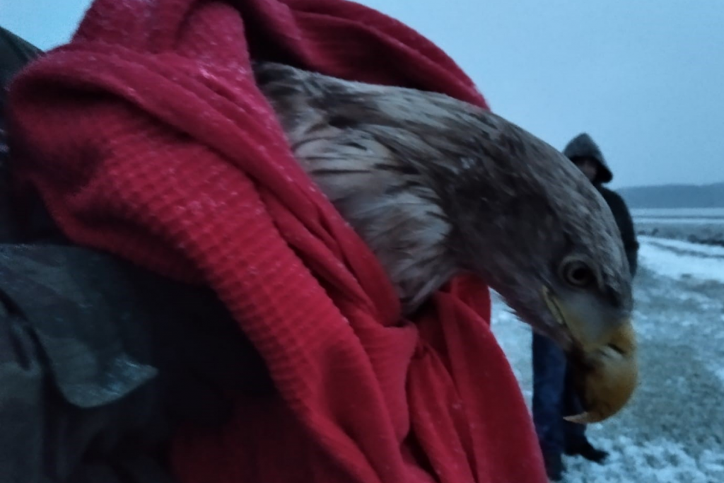 Ranny bielik tymczasowo umieszczony w Leśnej Osadzie w Kole. Po powrocie do zdrowia zostanie wypuszczony na wolność