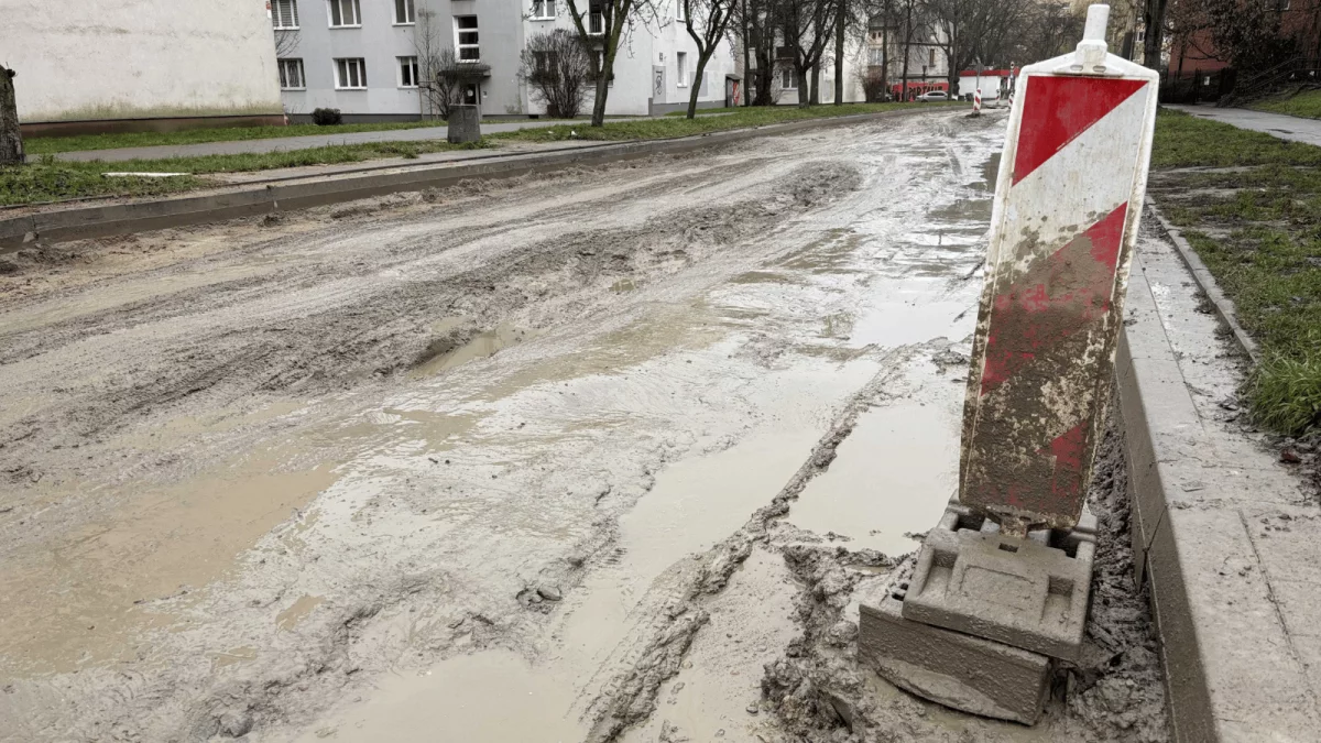 W remoncie ulicy nie pomogła także pogoda. Od kilku dni temperatura jest stale bliska zeru, do tego nie brakuje opadów deszczu i marznącego śniegu, a w efekcie droga wygląda jakby, zamiast nowej drogi miałoby tutaj powstać błotne kąpielisko.