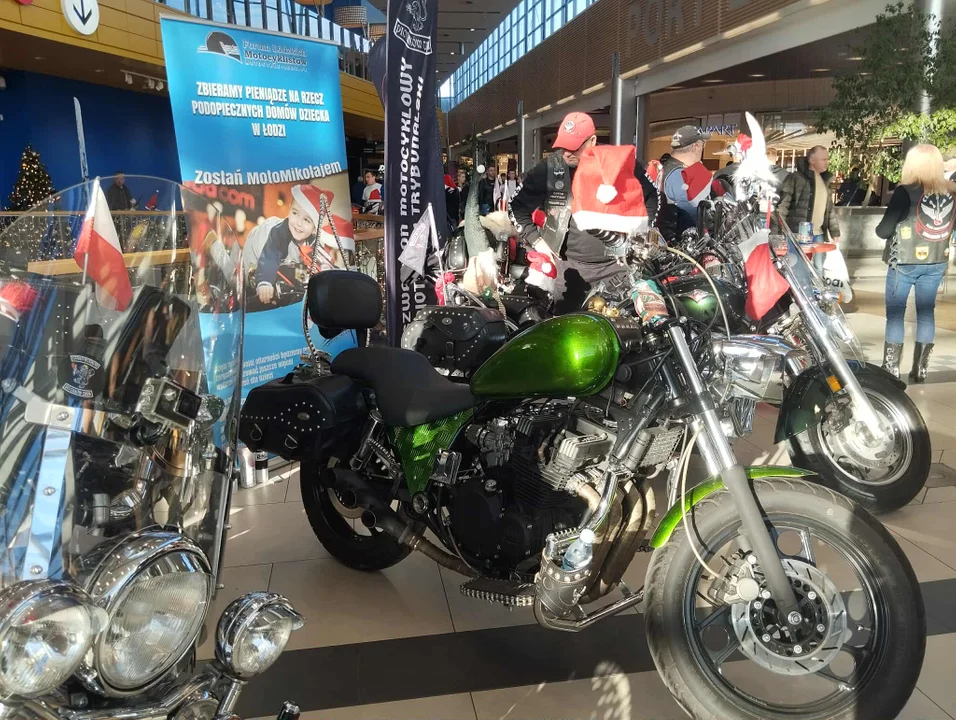 Podczas sobotniej zbiórki w Porcie Łódź klienci mogli podziwiać wystawę motocykli, najmłodsi chętnie zasiadali w saniach z MotoMikołajem i robili sobie zdjęcia.