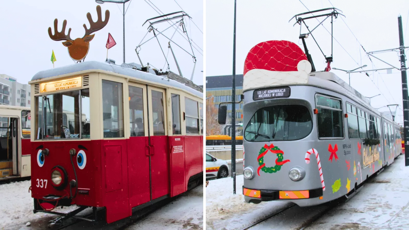 Na łódzkie ulice wyjadą łącznie dwa świąteczne składy – pierwszy tramwaj będzie miał na czole pojazdu czerwoną czapkę, drugi natomiast rogi renifera.