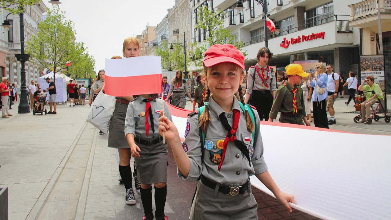 Parada z okazji Dnia Flagi RP przeszła z ul. Piotrkowskiej do Manufaktury