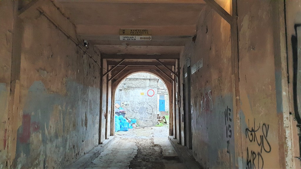 Aby wejść do budynku, trzeba przebrnąć przez podwórko. O tej porze roku bardziej przypomina ono bowiem bagno niż drogę z prawdziwego zdarzenia. Kamienica wita obdrapanymi ścianami i śmieciami zalegającymi w kontenerze. Na pierwszy plan szybko wybijają się dwa ogromne, metalowe wsporniki podtrzymujące ścianę sąsiedniego budynku. Patrząc na to, w jakich warunkach żyją tutaj ludzie, trudno uwierzyć, że są one w stanie zapobiec katastrofie. W tym miejscu nawet najsolidniej wyglądająca konstrukcja nie jest w stanie dodać choćby cienia otuchy.