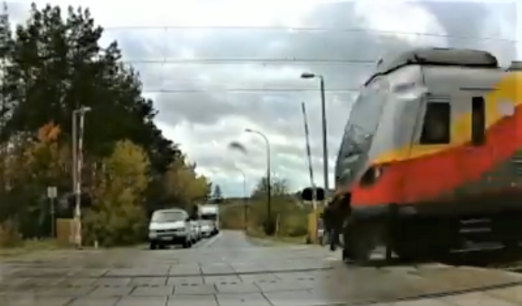 Zdarzenie zarejestrował kamerą samochodową jeden z uczestników ruchu i opublikował materiał w serwisie Facebook. Na nagraniu widzimy niebezpieczną sytuację, gdy podnoszą się zapory i zaraz potem niespodziewanie nadjeżdża rozpędzony pociąg. Sekundy zadecydowały, że kierowcy nie zdążyli wjechać na przejazd i nie doszło do tragedii.