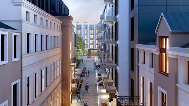Wkrótce zakończy się I etap inwestycji, dzięki któremu powstaną 34 również dwupoziomowe, apartamenty w metrażach od 28 do 84 m kw. oraz 8 lokali usługowych.