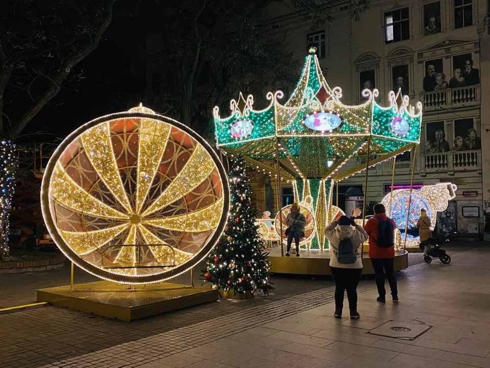 W ostatnich dniach mogliśmy obserwować proces montażu świątecznej dekoracji na ul. Piotrkowskiej. Zgodnie z zapowiedziami ozdobiony deptak rozbłysnął w pełni 1 grudnia.