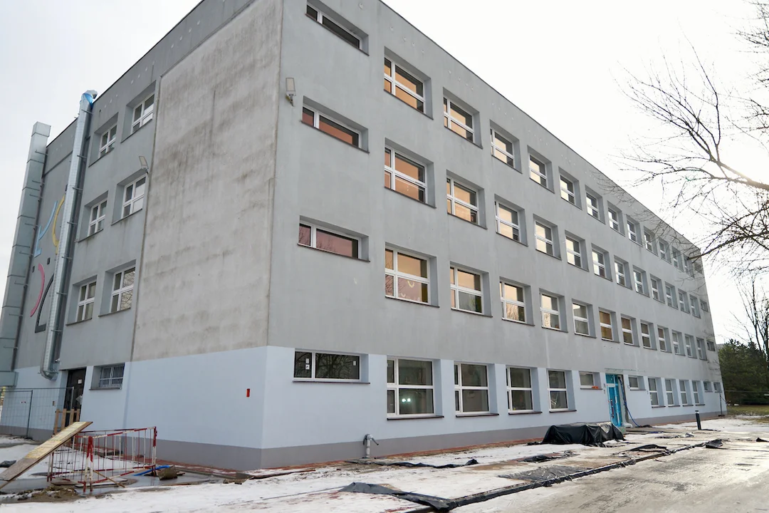 - Nowy obiekt ma już fundamenty, kondygnacje, dach, zamontowane okna i drzwi oraz windę. Na ukończeniu są instalacje sanitarne i elektryczne, trwają prace tynkarskie i ociepleniowe. W czasie ferii robotnicy pracowali również przy łączniku pomiędzy nową a istniejącą częścią szkoły