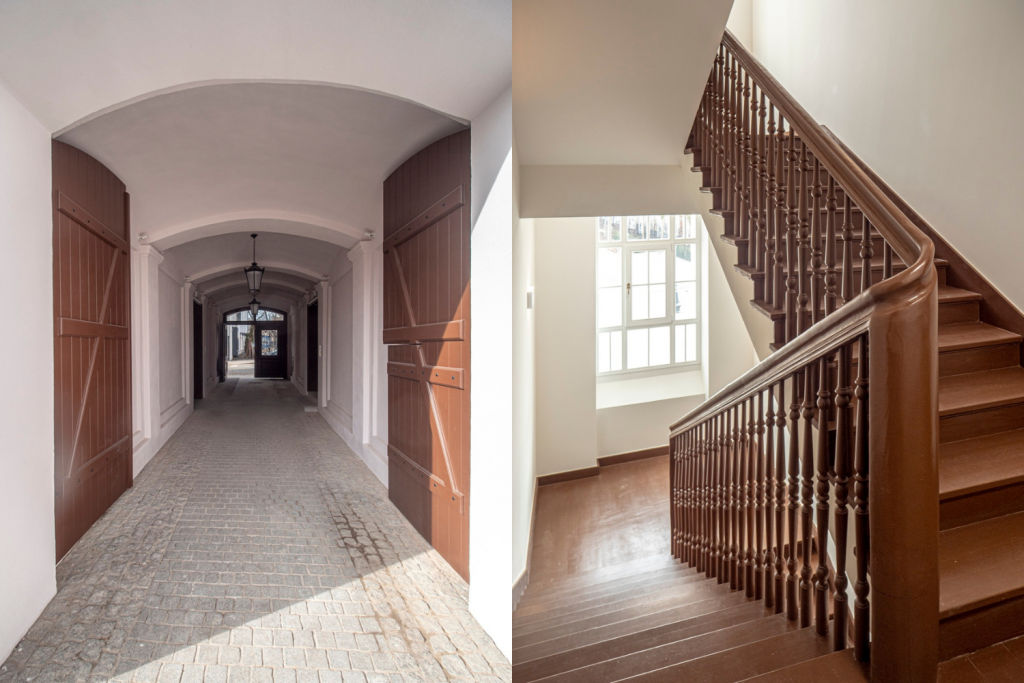 Zmieniło się także otoczenie kamienicy. Dawny ogród przeszedł metamorfozę: jego przestrzeń została uporządkowana, ma nowe alejki z ławkami i zamontowane oświetlenie. W części podwórza bliżej kamienicy zasadzono pełno zieleni niskiej i drzewa. Są grusze, jabłonie oraz różnokolorowe róże, hortensje oraz bluszcz i pnącza.