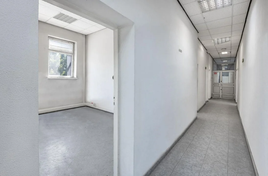 Wewnątrz znajdują się pomieszczenia biurowe, socjalne, gospodarcze i techniczne. Obiekt ma pełną infrastrukturę: wodę, kanalizację i sieć elektryczną oraz liczne miejsca parkingowe na utwardzonym terenie.