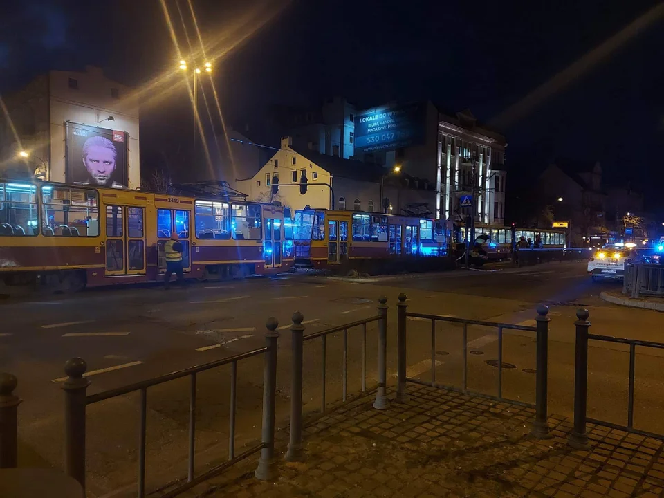 Według wstępnych ustaleń, kierujący samochodem osobowym, marki Volkswagen, przy skrzyżowaniu ze Struga wykonał, na czerwonym świetle, manewr skrętu w lewo w stronę Gdańskiej i wjechał pod tramwaj linii 7. Po chwili w pojazd uderzył drugi tramwaj jadący w przeciwnym kierunku, w stronę Manufaktury i przeciągnął go przez skrzyżowanie.