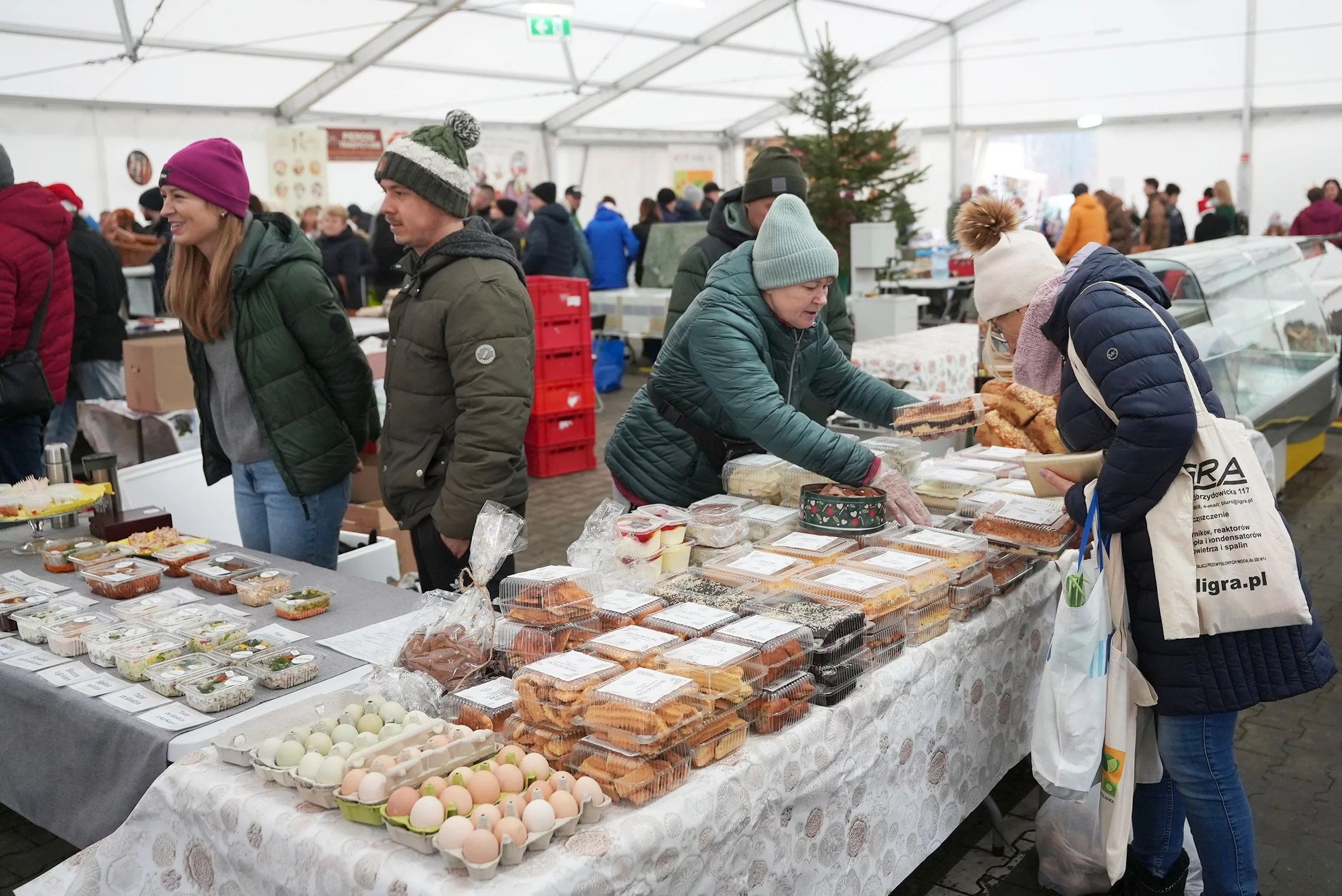 Na miejscu dostaniemy również ryby od lokalnych hodowców, grzyby, przyprawy, świeże jajka, twarogi, ręcznie robione pierogi, barszcz, pierniki, a także w Porcie Łódź będzie można zakupić świeże choinki.