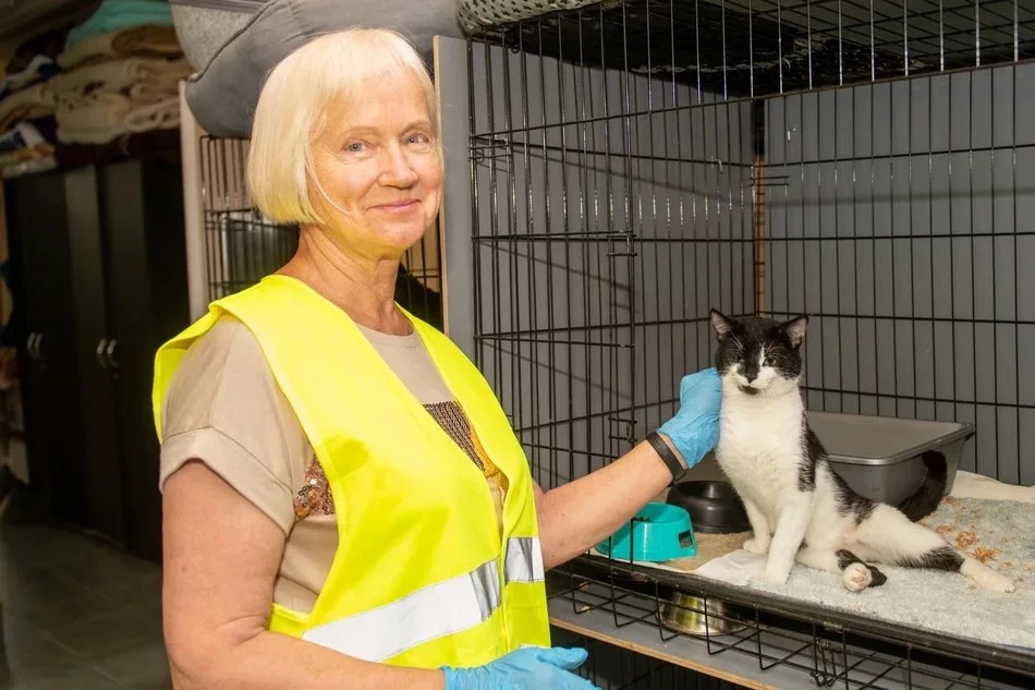 Pani Krystyna pomaga w schronisku od kilku miesięcy, zdecydowała się, bo jak mówi, od dawna chciała się zaangażować w taką działalność. Sama ma kota seniora (17 lat), a w przeszłości opiekowała się już zwierzętami.