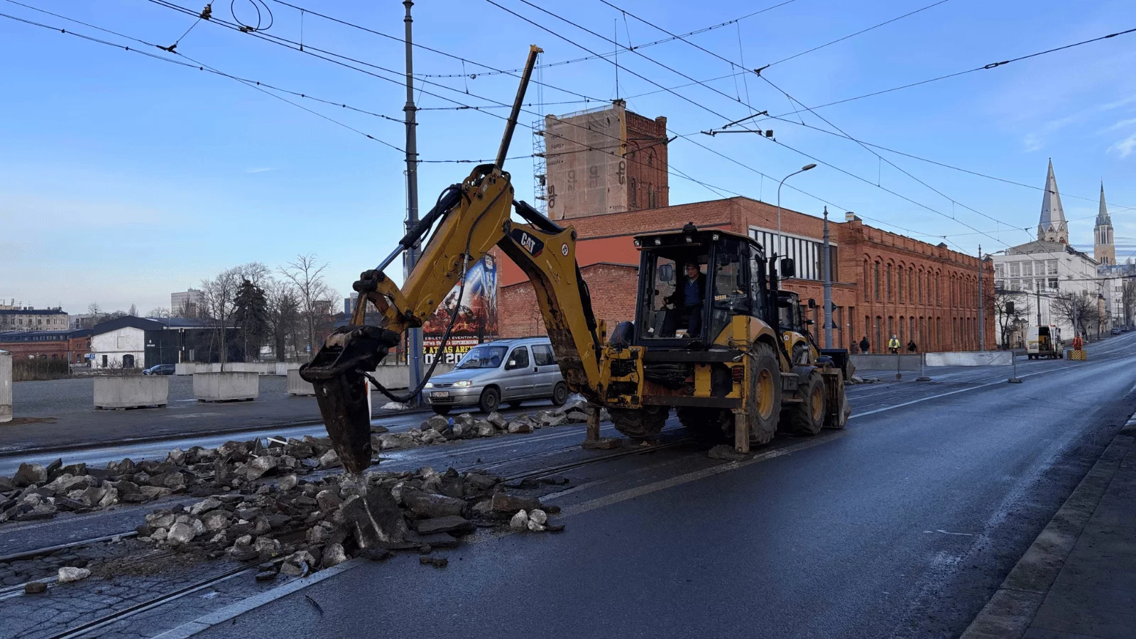 Z konkretnym korkiem spotkamy się także na Wólczańskiej, która jest aktualnie "objazdem" dla wszystkich tych, którzy spotkali zakaz wjazdu przy placu Reymonta. Na miejscu już od wczesnych godzin porannych trwa rozbiórka starego torowiska - pojawił się ciężki sprzęt. Przejazd jest dostępny wyłącznie od strony katedry w kierunku placu Niepodległości - tędy też kursuje autobus linii Z11 (Piotrkowska Centrum - plac Niepodległości).Choć na stronie łódzkiego MPK brak jest informacji o rozkładzie jazdy dla autobusów zastępczych Z11, od Nadzoru Ruchu usłyszeliśmy, że autobusy kursują średnio co 7,5 minuty, ale należy do tego dodać także korek na Wólczańskiej. Autobusy zatrzymują się w miejscu przystanku tramwajowego (przy placu Niepodległości), a przy Piotrkowskiej Centrum przy Centralu.