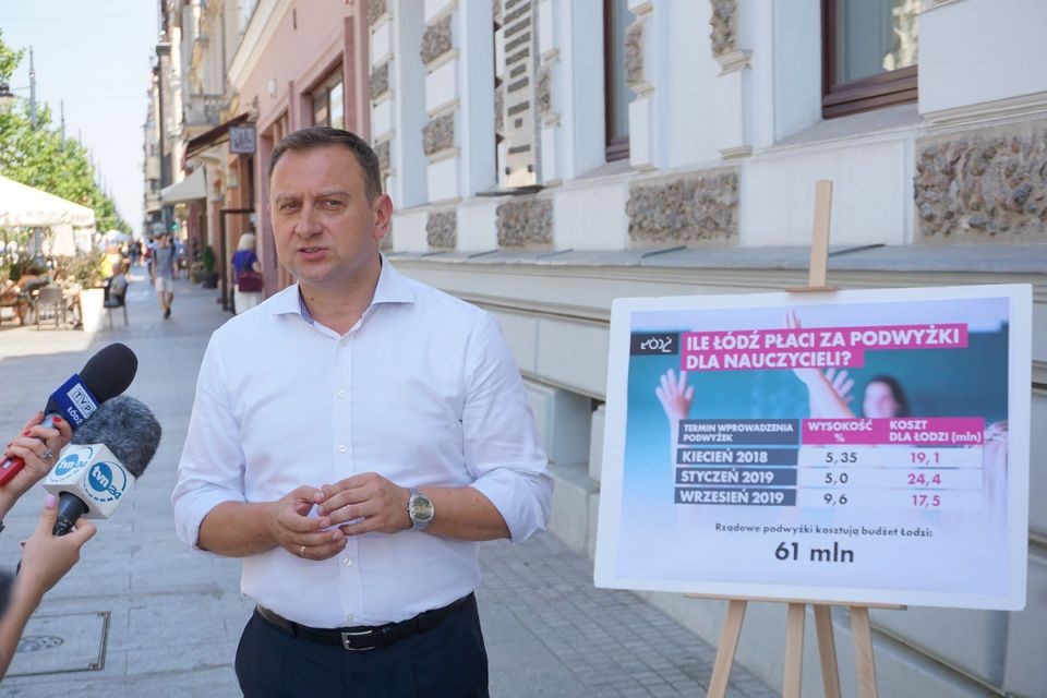 - Oczywistym jest, że nauczyciele powinni godnie zarabiać, ponieważ obecne płace są po prostu nieadekwatne do wykształcenia, doświadczenia i zaangażowania z jakim pracują pedagodzy. Podwyżki są konieczne, ale równie konieczne są dodatkowe środki na ten cel jakie powinny dostać samorządy. To rząd kształtuje pensje nauczycieli i rząd ma obowiązek zabezpieczyć na ten cel odpowiednie środki. Nie robi tego, obarczając samorządy dodatkowymi wydatkami, mimo szumnych zapewnień o wzroście subwencji oświatowej - podkreślił Tomasz Trela, wiceprezydent Łodzi.