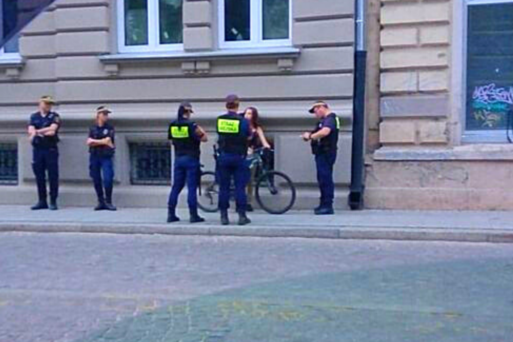 Zastrzeżenia wzbudza bliska odległość w jakiej od zatrzymanej znajdywali się strażnicy – żaden z funkcjonariuszy podczas interwencji nie miał zakrytych ust i nosa. Rowerzystka także nie miała na sobie maseczki.