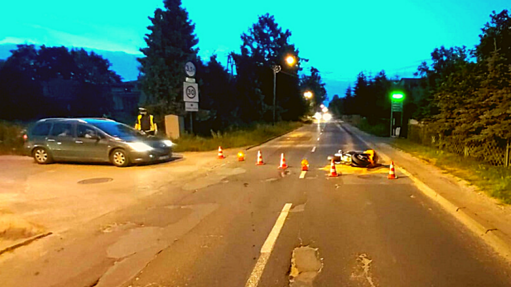 Podczas wykonywania manewru wyprzedzania, nie zachował bezpiecznego odstępu od pojazdu wyprzedzanego, w wyniku czego doprowadził do zderzenia ze skodą, kierowaną przez 29-letniego mężczyznę. Po zderzeniu motocyklista sunąc po jezdni z dużą siłą uderzył w bariery ochronne.
