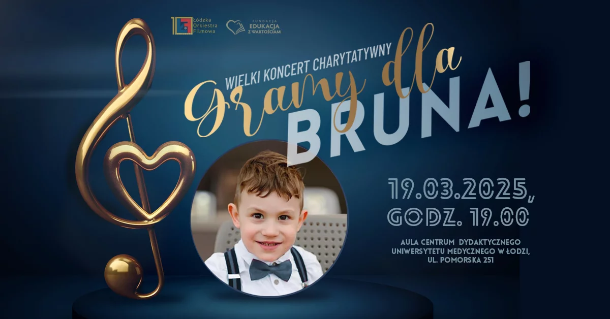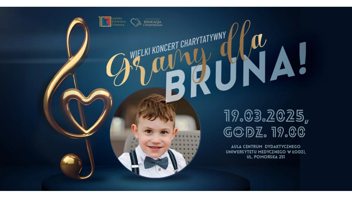 Jednym z dodatkowych sposobów, by skarbonkę na leczenie Bruna zapełnić, jest wielki koncert charytatywny. Jego organizatorami są Piotr Piątkowski, Adrian Pawlak, Maciej Kotynia i Magdalena Gałkiewicz. Wydarzenie odbędzie się 19 marca 2025 r. o godz. 19:00 w Auli Uniwersytetu Medycznego w Łodzi – wypełnić ją może 1000 osób.Niedawno wystartowała sprzedaż biletów – teraz można kupić je online TUTAJ. Mieszkańcy Łodzi (i nie tylko!) będą mogli zatem wybrać się na koncert, na którym pojawi się 160 wykonawców, a przy okazji wspomóc zbiórkę na leczenie Brunona Osłowskiego, 6-letniego łodzianina, który zmaga się z dystrofią mięśniową Duchenne'a.