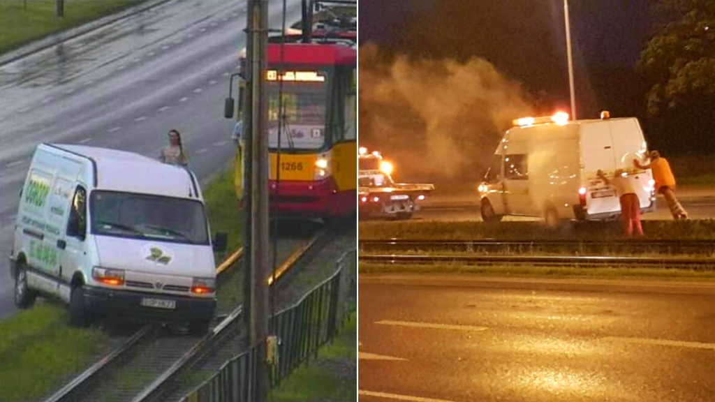 W drugim przypadku wyciagnięcie busa było bardziej skomplikowane, auto bardzo niefortunnie utknęło w torowisku.