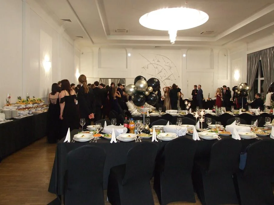 Po oficjalnej części przyszedł czas na tradycyjny taniec, który od lat otwiera każdy bal studniówkowy. W sali bankietowej hotelu w kompleksie Czarny Staw polonez trzeba było zatańczyć… w dwóch turach. Nic dziwnego - choć parkiet był ogromny, swój pierwszy bal miały aż cztery klasy czwarte. Łącznie, razem z osobami towarzyszącymi i nauczycielami, bawiło się około 280 osób.Rodzicom szkliły się oczy, gdy stojąc pod ścianą, obserwowali swoje dorosłe już dzieci w eleganckich garniturach i przepięknych sukniach. W tym roku królowała klasyczna czerń, ale równie często pojawiał się głęboki burgund. Nie zabrakło też delikatnych odcieni różu. Maturzystki postawiły głównie na długość maxi i prezentowały się naprawdę zjawiskowo. Oczywiście, zgodnie z tradycją, każda z dziwcząt miała czerwoną podwiązkę „na szczęście”.