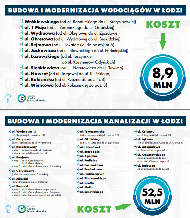 Prace będą zrealizowane na łącznie 9 ulicach za prawie 9.000.000 zł. Łódzka Spółka Infrastrukturalna zaplanowała modernizację wodociągów na ul. Łazowskiego, Wieńcowej i Rokicińskiej.