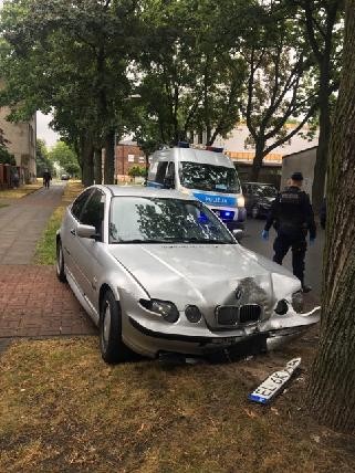 Na ulicy Wacława 26-letni mężczyzna siedzący za kółkiem BMW utracił panowanie nad pojazdem i uderzył w drzewo, po czym już pieszo rzucił się w dalszą ucieczkę. Kiladziesiąt metrów dalej pirata drogowego zatrzymano i obezwładniono. Podczas przeszukania, funkcjonariusze znaleźli u mężczyzny torebkę z białą substancją w proszku.