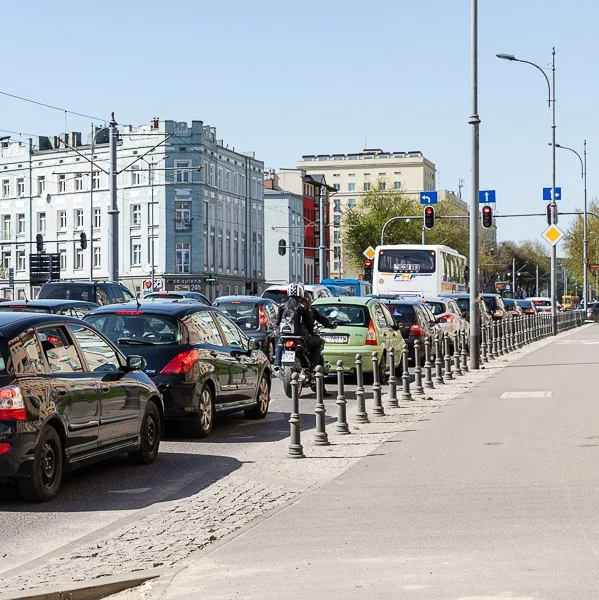 Stoi skrzyżowanie Zachodniej z Ogrodową. Północna zakorkowana już od wysokości ul. Franciszkańskiej. Ul. Zachodnia mocno korkuje się na odcinku między ul. Legionów a Lutomierską.