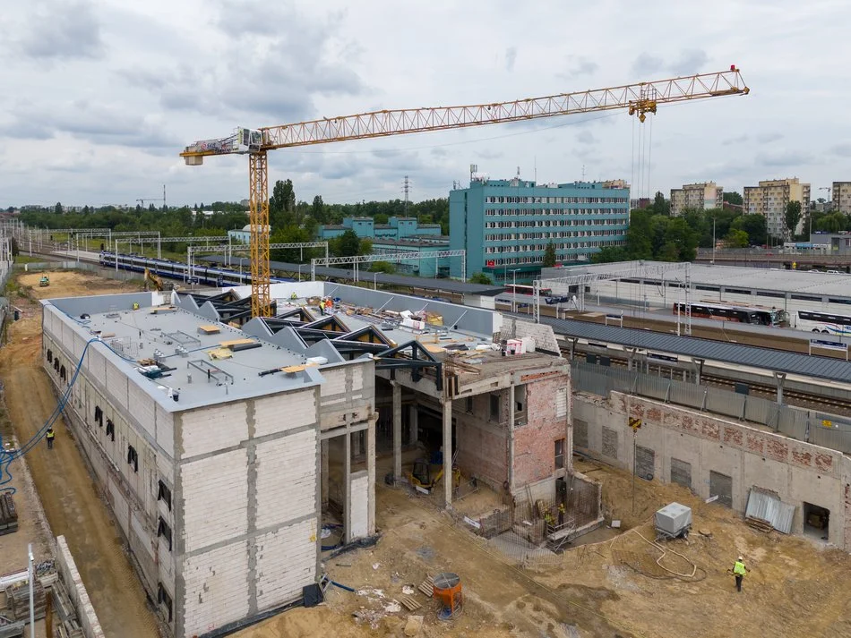 - Wykonano pokrycie dachowe budynku komercyjnego. W maju planujemy zamontować stolarkę aluminiową oraz wykonać tynki i posadzki. Zakończono roboty rozbiórkowe wokół budynku głównego dworca. Na ukończeniu są roboty ziemne, prace żelbetowe i roboty murowe. Trwa montaż pokrycia dachowego i roboty tynkarskie wewnątrz budynku. Zamontowane zostały już też pierwsze okna aluminiowe. Na zewnątrz wykonano sieci sanitarne przed budynkiem głównego dworca