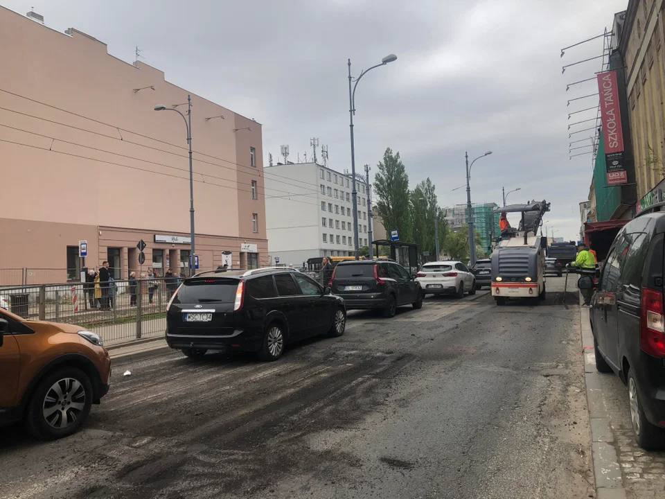Za skrzyżowaniem z ulicą Próchnika wymieniana jest nakładka asfaltowa zarówno na jednym, jak i drugim pasie w kierunku ul. Więckowskiego.