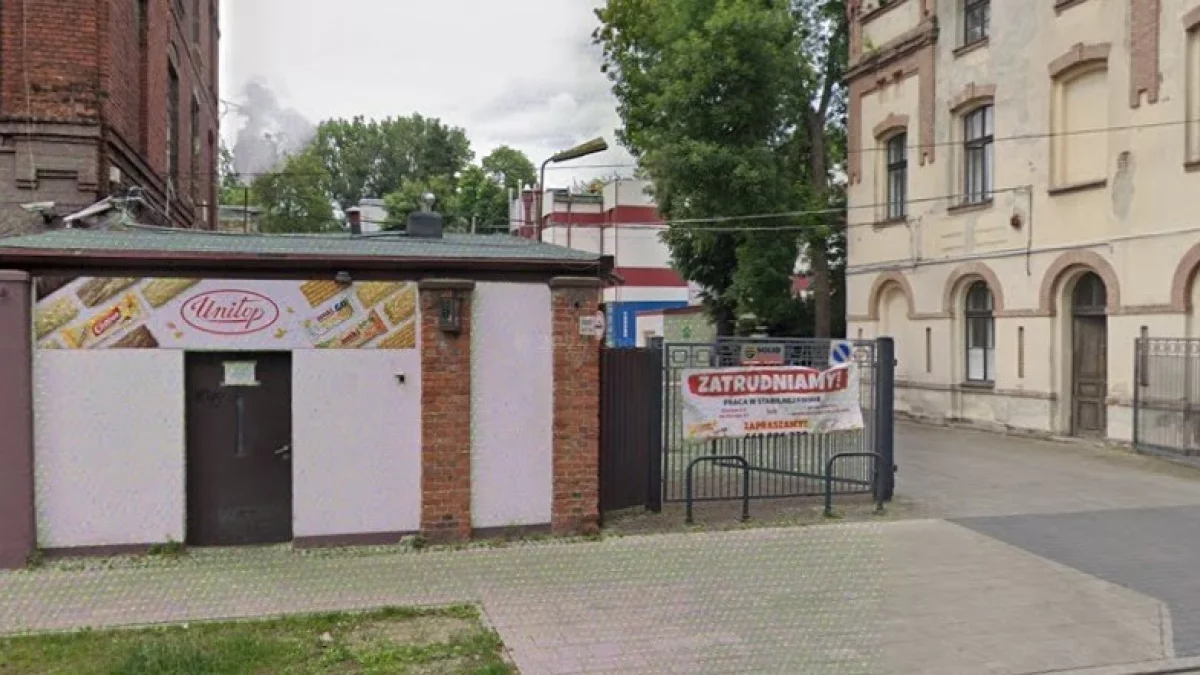 Na ogrodzeniu zakładu wisi ogłoszenie zaczynające się od dużego napisu "Zatrudniamy!". Dalej czytamy o możliwości podjęcia pracy w stabilnej firmie.