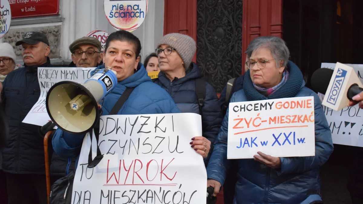 Lokatorzy przyszli pod urząd z transparentami. "Dość rosnących kosztów najmu", "Toaleta w domu to nie luksus", "podwyżki czynszu to wyrok dla mieszkańców" - to tylko niektóre z nich.Protestowali mieszkańcy lokali komunalnych, w tym tych po rewitalizacji (Włókienniczej czy na Księżym Młynie).
