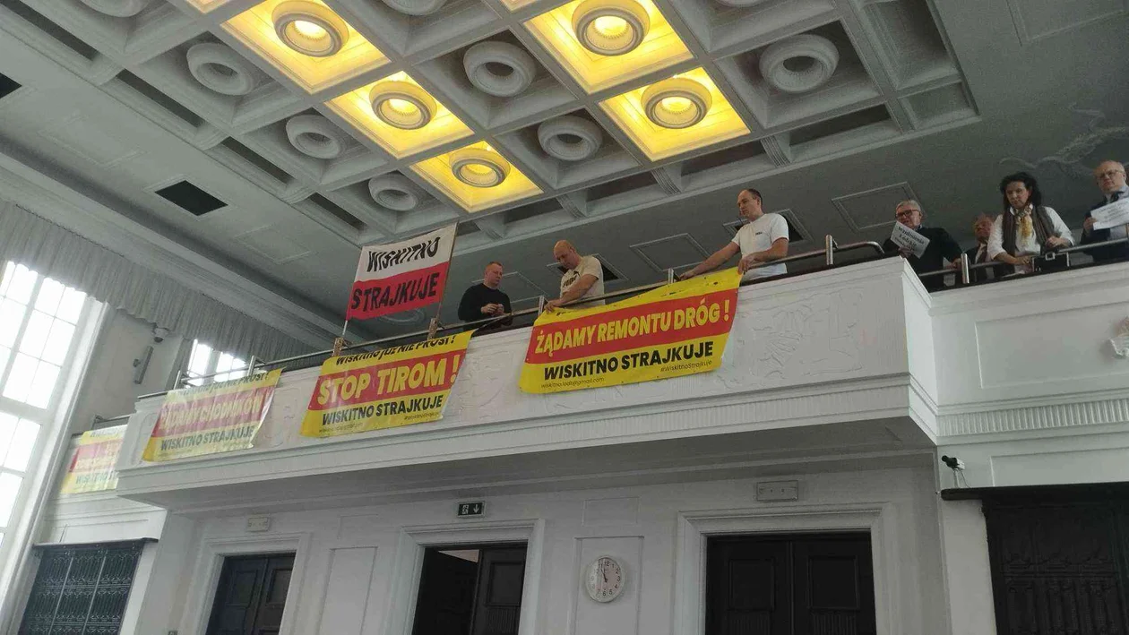 Punkt dotyczący zmian w budżecie był omawiany między godz. 12 a 13. Zainteresowani tematem mieszkańcy zgromadzili się na balkonie sali obrad RM i - profilaktycznie - oflagowali transparentami z napisami "Wiskitno już nie prosi, Wiskitno żąda" i "Żądamy remontu dróg". Na szczęście zaostrzenie manifestacji nie było konieczne, ponieważ wprowadzone do budżetu poprawki dotyczące remontów na osiedlu zostały przegłosowane bez uwag.