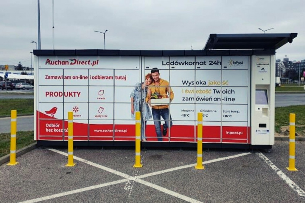 Funkcjonalności maszyn InPost pozwalają na bezpieczne przechowanie i odbiór żywności, napojów oraz mrożonek zamówionych przez Internet w Auchan Direct. Pierwszy Lodówkomat działający przez całą dobę, siedem dni w tygodniu pojawił się 14 kwietnia br. w Piasecznie dla klientów e-sklepu Auchan.
