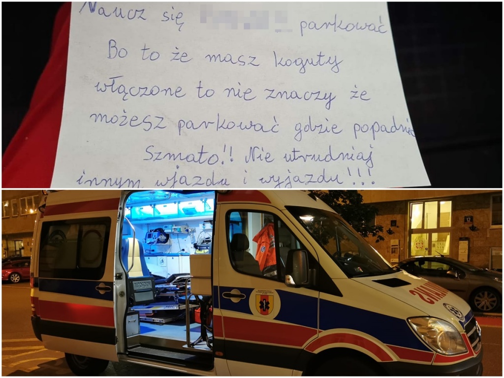 Kartka za szybką łódzkiej karetki: "Naucz się parkować"