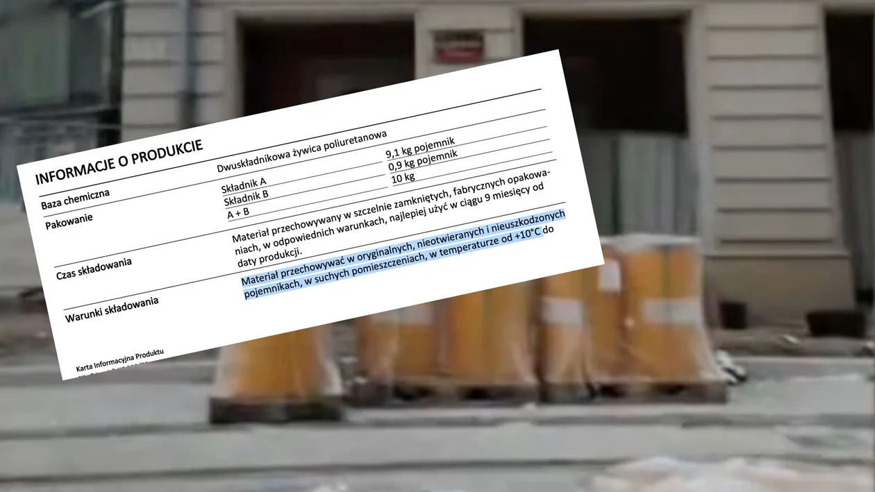 O to, czy obecne warunki przechowywania substancji mogą jej zaszkodzić, zapytaliśmy producenta drogą mailową – czekamy na odpowiedź. Nie udało nam się niestety ustalić, czy materiały rozstawione wokół pl. Wolności będą jeszcze wykorzystywane.
