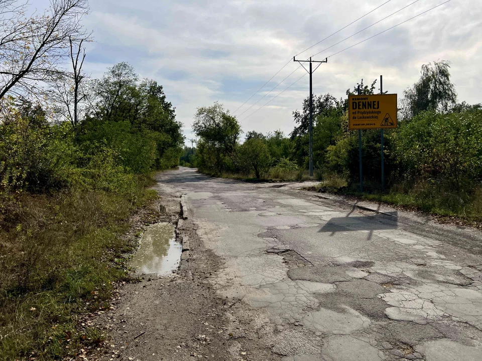 Remontowany odcinek na czas trwania prac zostanie zamknięty. Pozostały fragment ul. Dennej wymaga uregulowania własności działek, wykupu gruntu i stworzenia projektu przebudowy. Dlatego drogowcy zajmą się teraz pierwszym odcinkiem. W kolejnym etapie, który jest właśnie w przygotowaniu, wykonają przebudowę dalszego odcinka do ul. Pienistej, gdzie powstanie nowa droga, chodniki oraz oświetlenie.