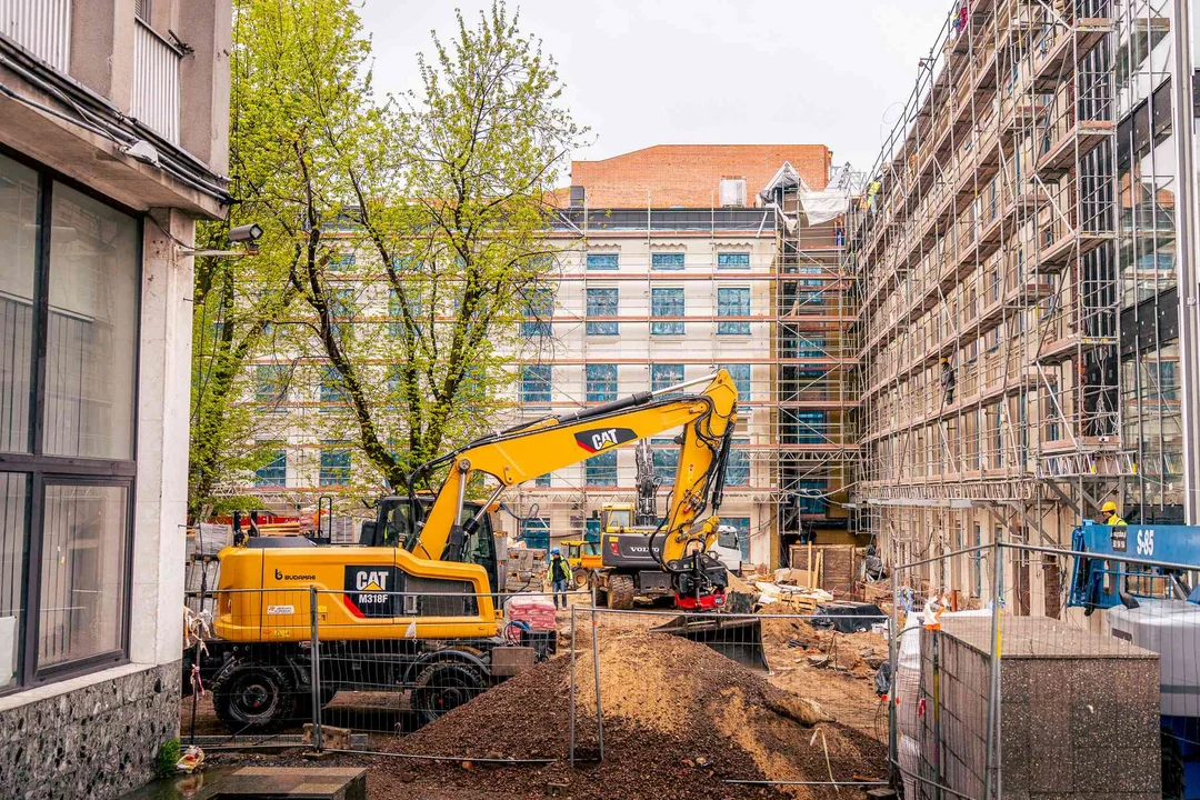 W sąsiednim budynku przy ul. Sienkiewicza 63 zakończono montaż dachu. Trwa układanie izolacji fundamentów oraz budowa zewnętrznych schodów. Od strony ul. Piotrkowskiej jest montowana kanalizacja deszczowa. Wewnątrz kamienicy ekipy budowlane można spotkać w piwnicy, gdzie wykonywane są tzw. szachty instalacyjne, oraz w szybie windowym, który jest przebudowywany. Ponadto trwa uzbrajanie ścian działowych na drugim i trzecim piętrze.