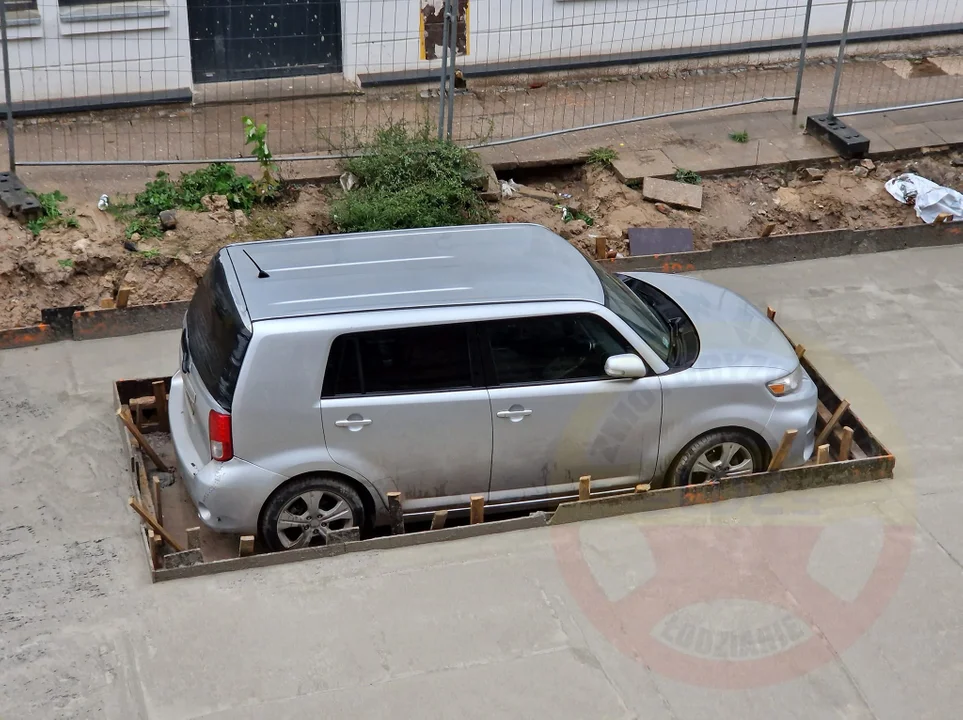 Samochód zaparkował na placu budowy w Łodzi - został zabetonowany z każdej strony