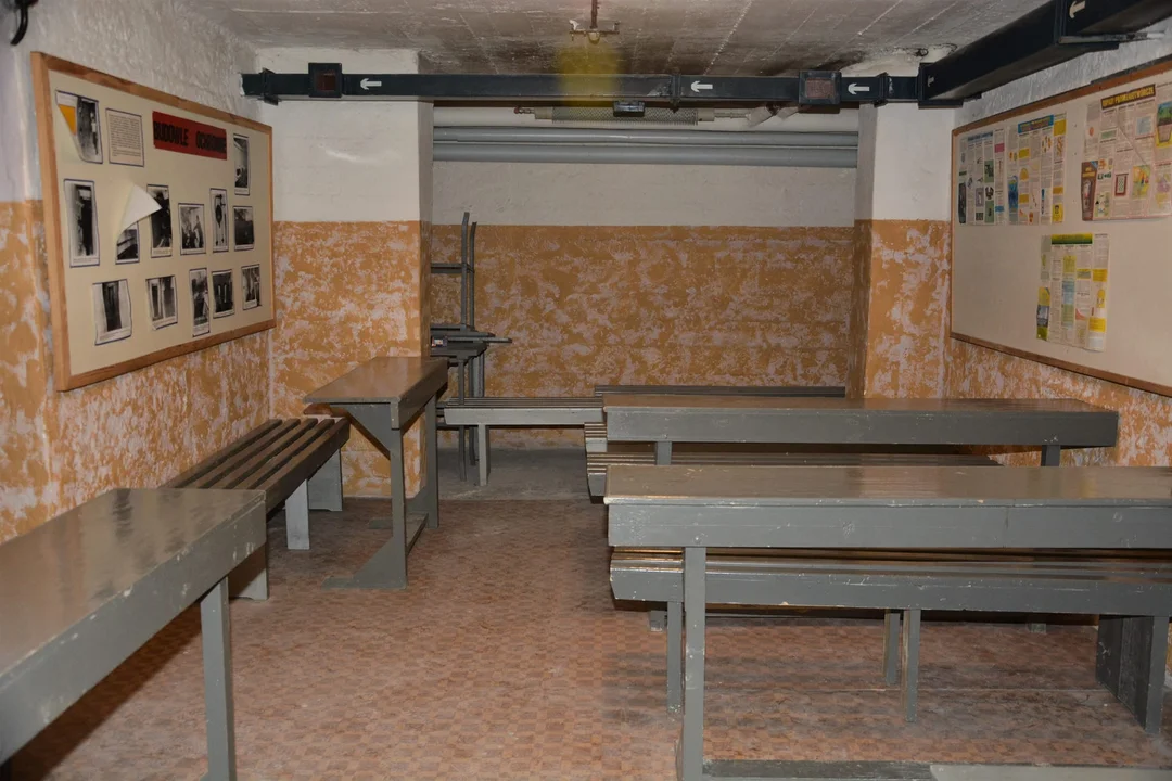 Ich obecność świadczy o braku modernizacji w historii obiektu. Agregat filtrowentylacyjny jest podobno kompletny, jednakże ulokowany w innym pomieszczeniu, do którego klucze posiada tylko administracja. Ciekawym znaleziskiem jest mapa sytuacyjno-wysokościowa w skali 1:500, która powstała 30 maja 1975 roku w Miejskim Przedsiębiorstwie Geodezyjnym w Łodzi. Uwagę na tej mapie zwraca mały kwadrat po północnej stronie budynku z napisem "TOPL". Jest to skrót od Terenowa Obrona Przeciwlotnicza i w tym przypadku oznaczał wyjście ewakuacyjne ze schronu tzw. "Grzybek".