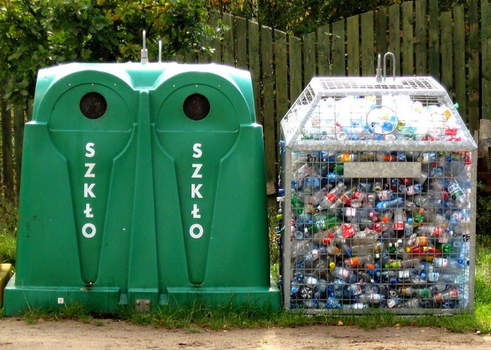 - Zielony (szkło): butelki i słoiki po napojach i żywności - w tym po alkoholach i olejach roślinnych - szklane opakowania po kosmetykach, chyba że wykonano jest z kilku, trwale połączonych surowców (nie wrzucamy: ceramiki, doniczek, porcelany, fajansu, kryształów, szkła żaroodpornego i okularowego, żarówek, reflektorów, opakowań po lekach i olejach silnikowych, luster, szyb okiennych, monitorów, lamp telewizyjnych, termometrów i strzykawek).