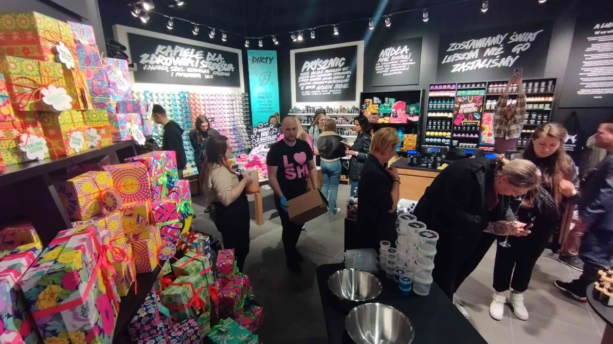 Lush to brytyjska firma, która zajmuje się produkcją przyjaznych, wegańskich i ekologicznych kosmetyków. Wśród nich są słynne kule do kąpieli, szampony do włosów w kostkach i pachnące balsamy do ciała. Wszystko jest robione ręcznie i w większości bez papierowych czy plastikowych opakowań. I właśnie dzięki temu, że kąpielowe bomby i mydła leżą na półkach luzem, roztaczają wokół bardzo intensywny i przyjemny zapach.