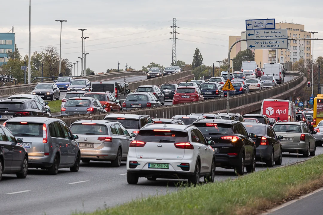 Bardzo duże korki na jednym z najważniejszych łódzkich skrzyżowań. Sznur aut przy dojeździe do Włókniarzy/Bandurskiego/Mickiewicza.