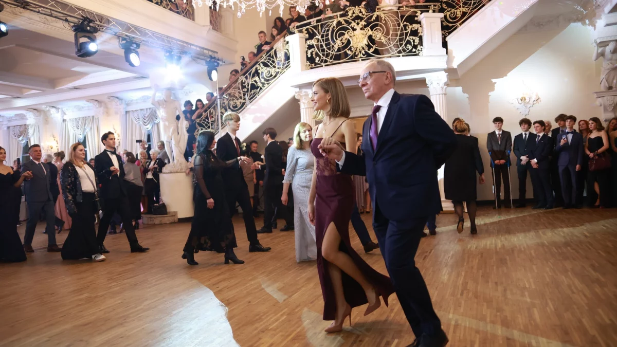 Po krótkiej części oficjalnej nastąpiło uroczyste rozpoczęcie tradycyjnego tańca, początkowo z nauczycielami znamiennym fragmentem Pana Tadeusza Adama Mickiewicza, zacytowanego przez dyrektorkę szkoły, Agatę Kasprzyk-Maryniak.