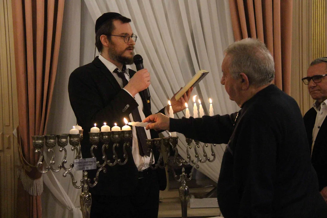Na Chanuce nie mogło zabraknąć przewodniczącego Gminy Żydowskiej Józefa Weiningera i rabina Dawida Szychowskiego. Ten drugi odprawił tradycyjny rytuał zapalenia świec umieszczonych na specjalnym, chanukowym, ośmioramiennym świeczniku - chanukii.
