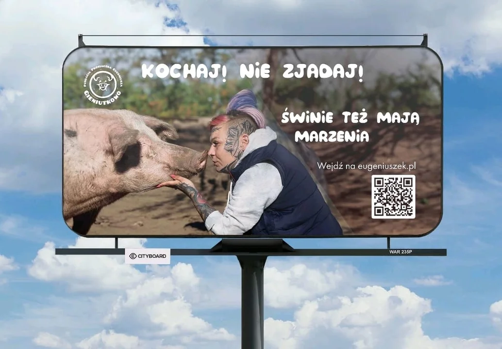 Dlaczego zdecydowali się na zorganizowanie kampanii bilbordowej, na której pojawił się napis: Kochaj! Nie zjadaj! Świnie, też mają marzenia? - Chcemy uwrażliwić ludzi na los świń. Bardzo byśmy chcieli, żeby ludzie przestali traktować te zwierzęta, tylko jako potencjalne jedzenie. Za nimi wciąż ciągnie się zła opinia, że są brudne, że zjedzą wszystko, co im się da. To nieprawda, to zabawne, wrażliwe zwierzęta, które mają swoje kulinarne gusta. Prawie wszystkie lubią arbuzy, ale już banany nie - opowiada nam pan Marcin Kaeres.