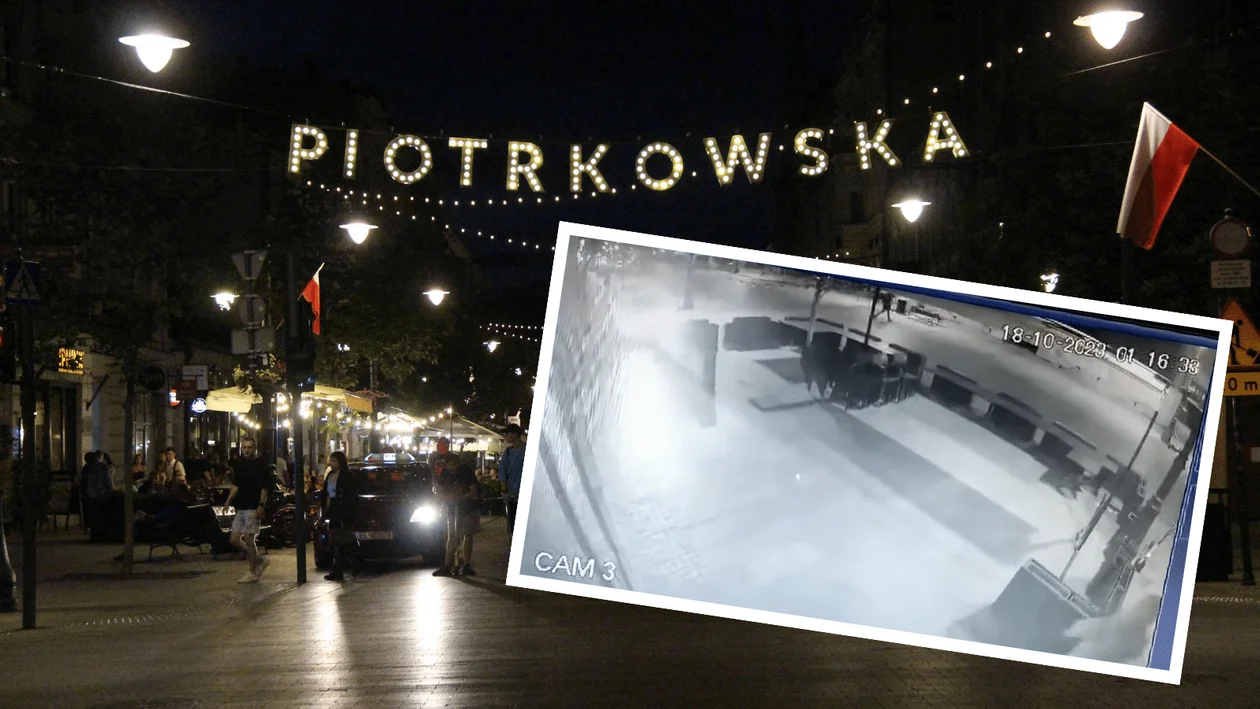 Do szokującego zdarzenia doszło w nocy z wtorku, 17 października na środę, 18 października. Z nagrania zarejestrowanego około godziny 1:15 na ul. Piotrkowskiej w Łodzi widzimy pędzący samochód.
